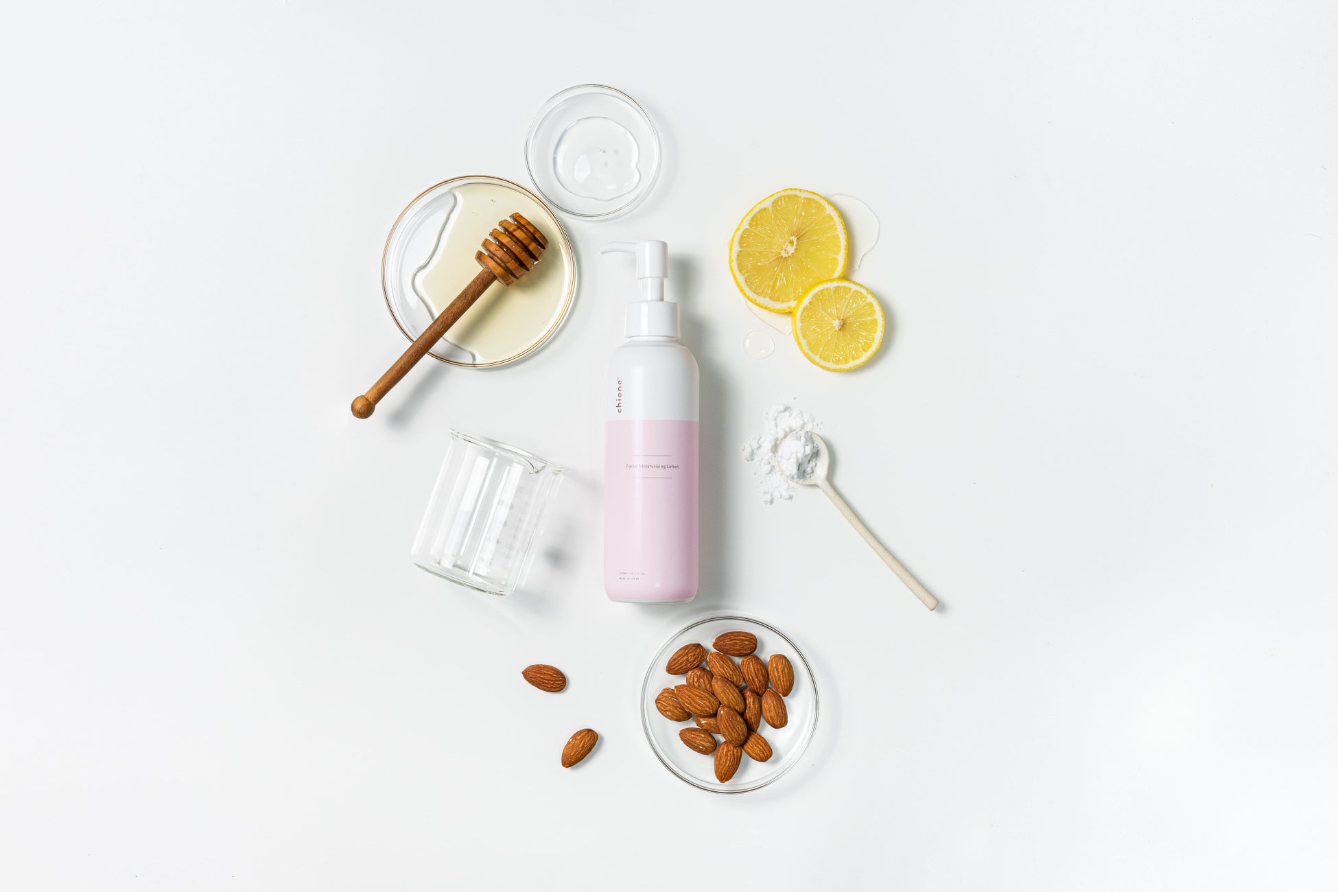 炎症を抑えるはたらきを持つ「グリチルリチン酸」や、美肌効果の高い「ビタミンC誘導体」を配合で、敏感な状態のお肌にも心配なくご使用いただけます。ポンプ式容器と伸びが良くベタつかない使用感も、chione(キオネー)トップの人気を持つ秘訣。