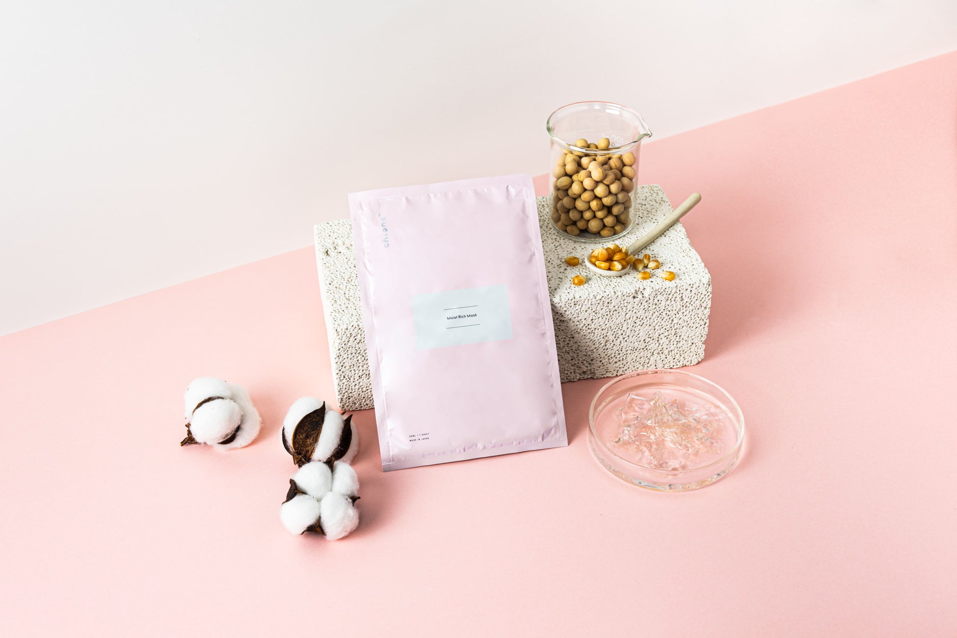 一袋に26mLもの美容液をたっぷり含み、高級素材の「ベンリーゼ®」を使用した贅沢なモイストリッチマスク。ベンリーゼ®素材のシートは密着性と保水性に優れ、使用中にシートが乾いてしまう心配がありません。また、肌触りがやわらかく刺激も少ないので、お肌を潤いでやさしく包み込み保湿してくれます。