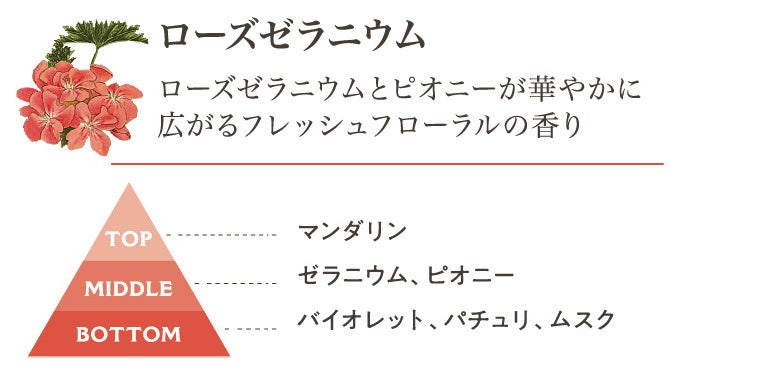 ローズゼラニウム ローズゼラニウムとピオニーが華やかに広がるフレッシュフローラルの香り