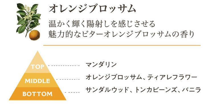 オレンジブロッサム 温かく輝く陽射しを感じさせる魅力的なビターオレンジブロッサムの香り