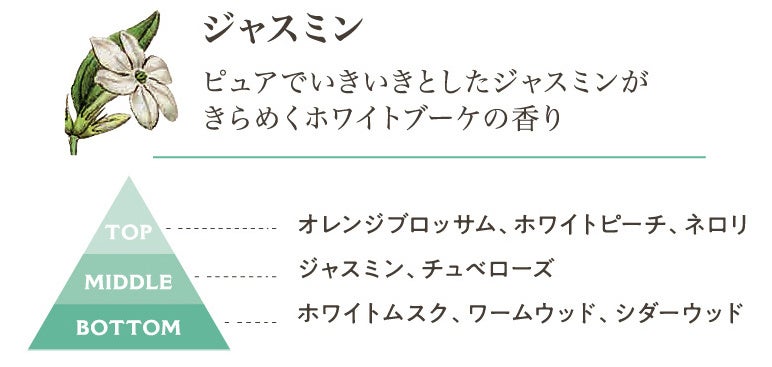 ジャスミン ピュアでいきいきとしたジャスミンがきらめくホワイトブーケの香り