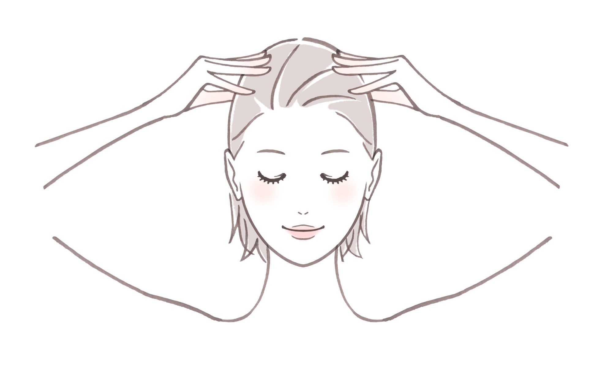 両手の指の腹で、頭をつかむようにして、頭皮全体を