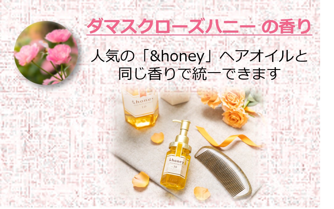 さらに、人気の&honeyヘアオイルと同じダマスクローズハニーの香りを採用しています。