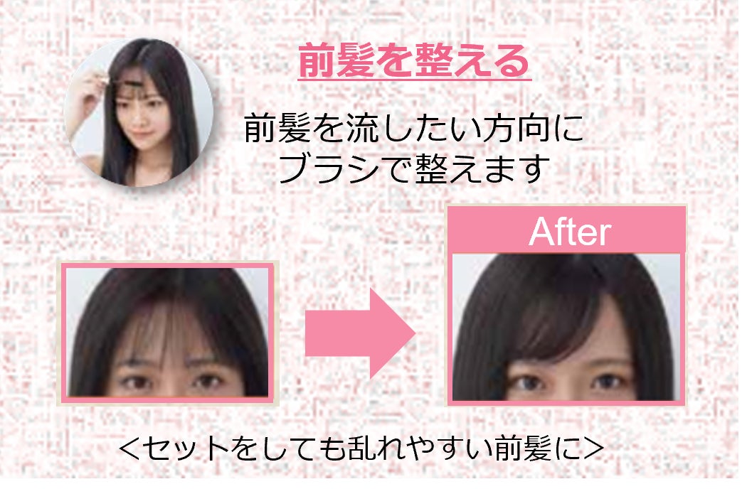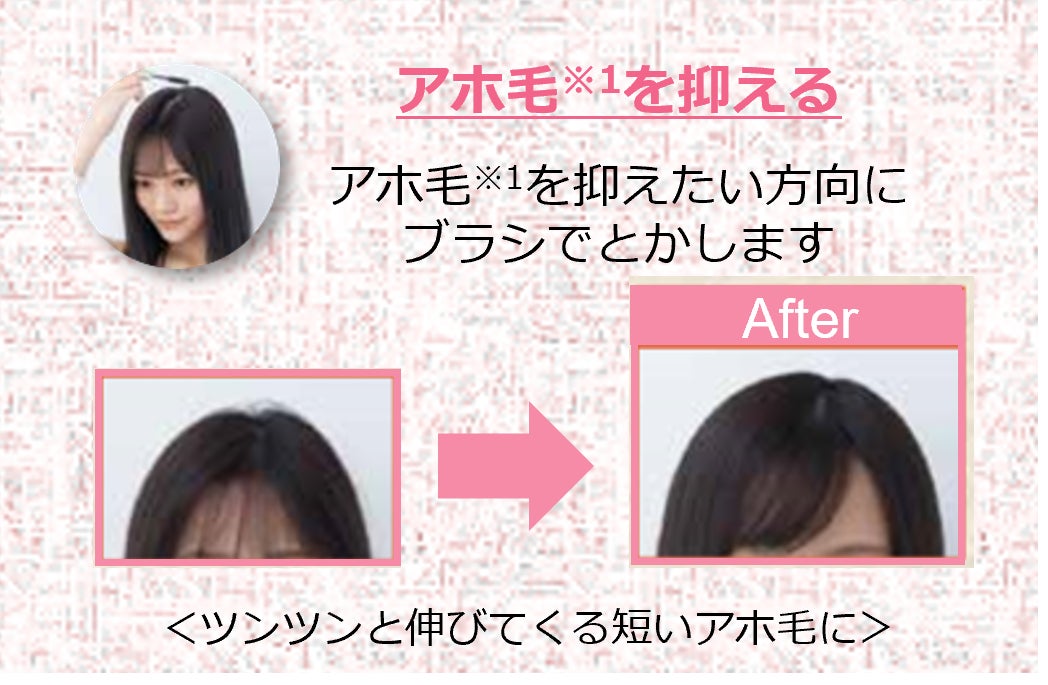 前髪・アホ毛※1・おくれ毛を抑えたい方向にブラシでとかしてなじませることで、簡単にスタイリングができます。