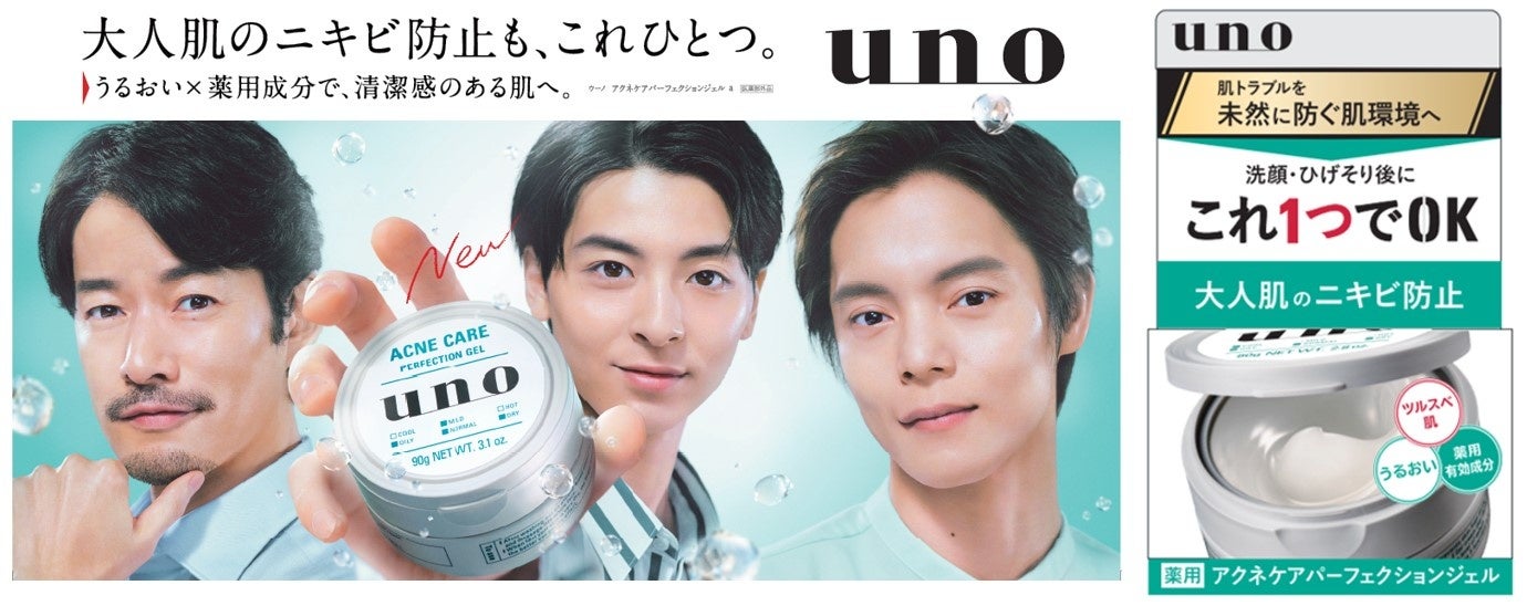男性の肌悩みNo.1が「ニキビ」※1であることを受け、メンズスキンケアのエキスパートである「uno」は、男性の肌やライフスタイルに寄り添った「大人肌のニキビ」防止アイテム「ウーノ アクネケア パーフェクションジェル(医薬部外品)」を3月8日より新発売いたします。