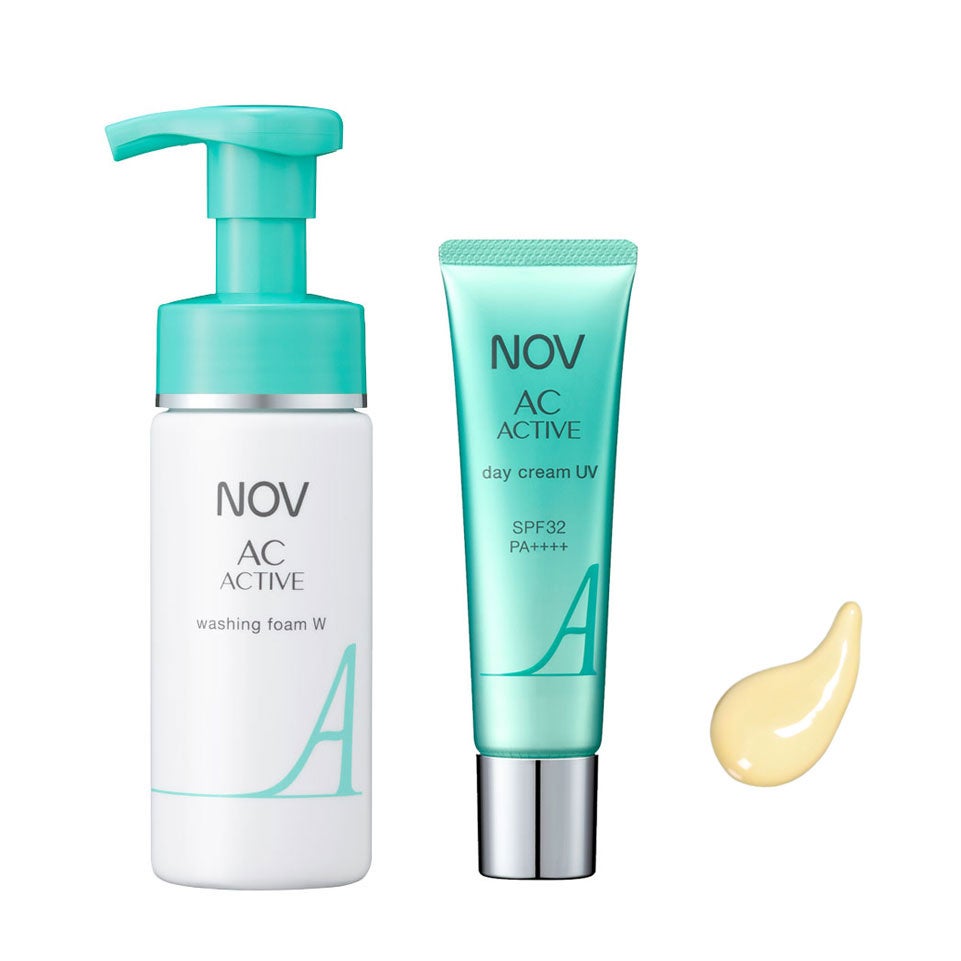ノエビアグループ 常盤薬品工業株式会社(東京都港区)の臨床皮膚医学に基づいて敏感肌のスキンケアを考える低刺激性化粧品ブランド『ノブ』は、にきび肌のさまざまな悩みを考えた「ノブ ACアクティブシリーズ」から、にきび肌のための泡洗顔「ウォッシングフォーム W」と日中用クリーム「デイクリーム UV」を発売いたします。