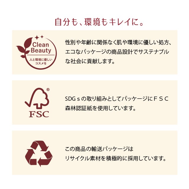 肌や環境に優しい処方、エコなパッケージの商品設計でサステナブルな社会に貢献します。