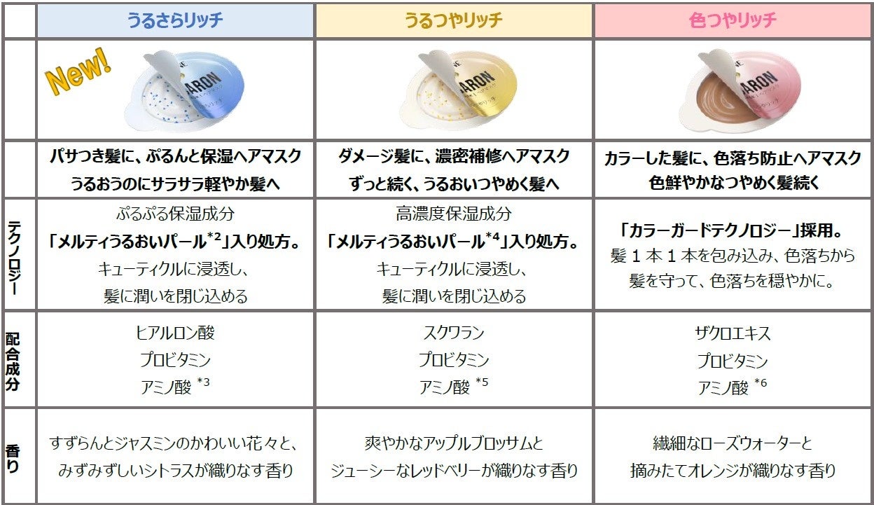 2022年10月に発売した1回使い切りタイプの洗い流すトリートメント「パンテーン マカロン ヘアマスク」のダメージ補修ケアの「うるつやリッチ」、色落ち防止ケアの「色つやリッチ」に加え、今回は乾燥してパサついた髪を高保湿ケアする「うるさらリッチ」を新たに発売します。