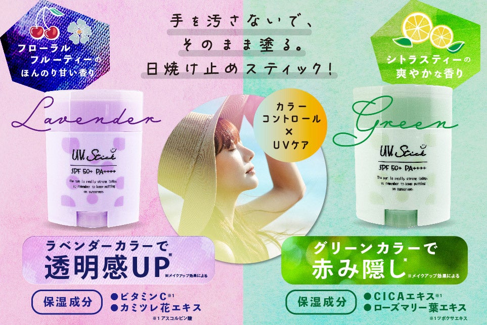 カラーコントロール×UVケアが可能!手を汚さないでそのまま塗れる日焼け止めスティック3月3日より2種発売中