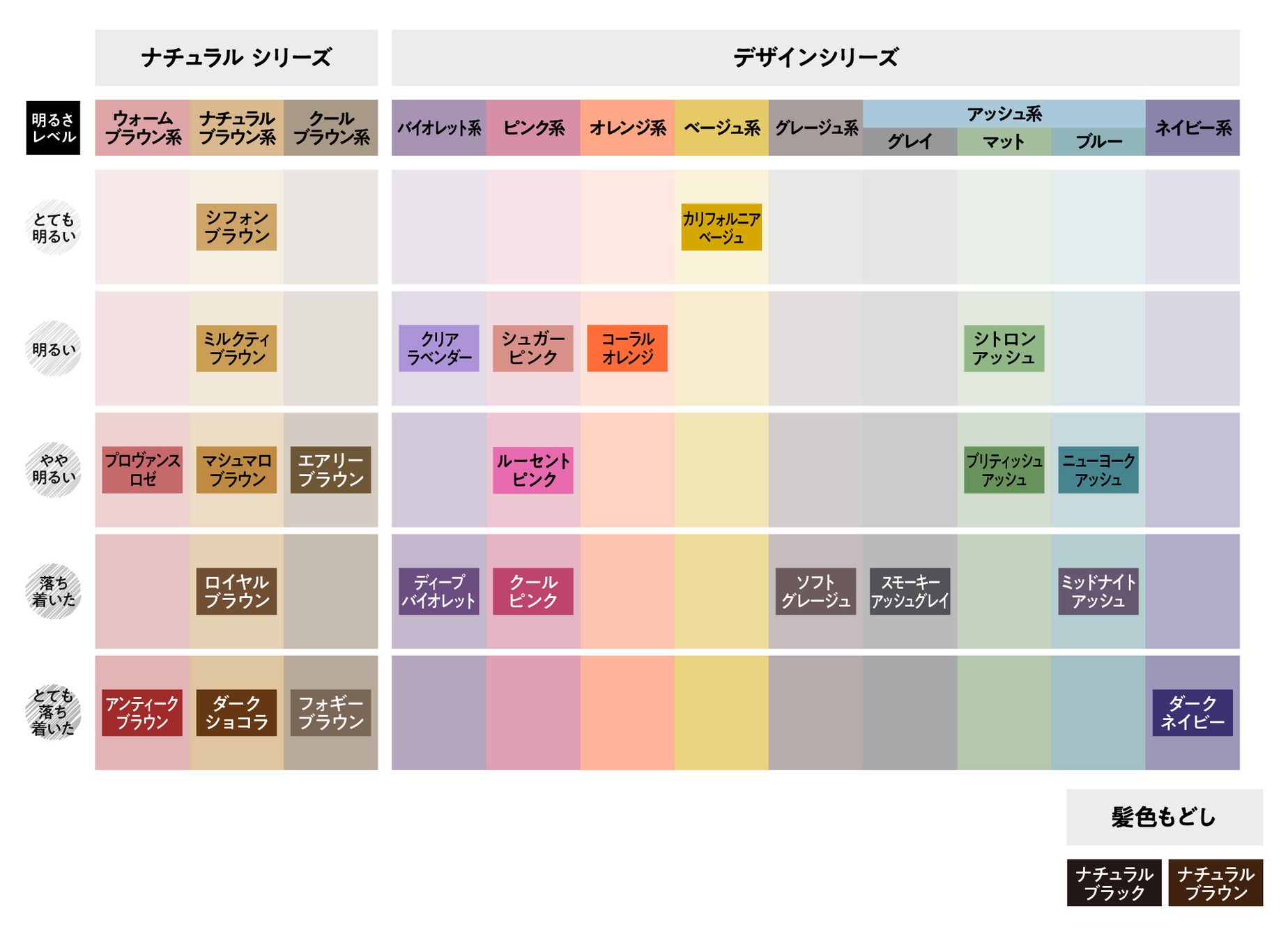 ・透明感とやわらかさを表現するために、グレーやブルーの色味をブレンドした「サロン発想」の色設計