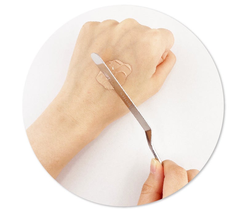 角度付きの持ち手で塗りやすい角度付きの持ち手で塗りやすいスパチュラを使用することでファンデーションがなめらかに伸び、素肌に一枚薄いベールをかけたような軽やかで自然な肌を演出します。
