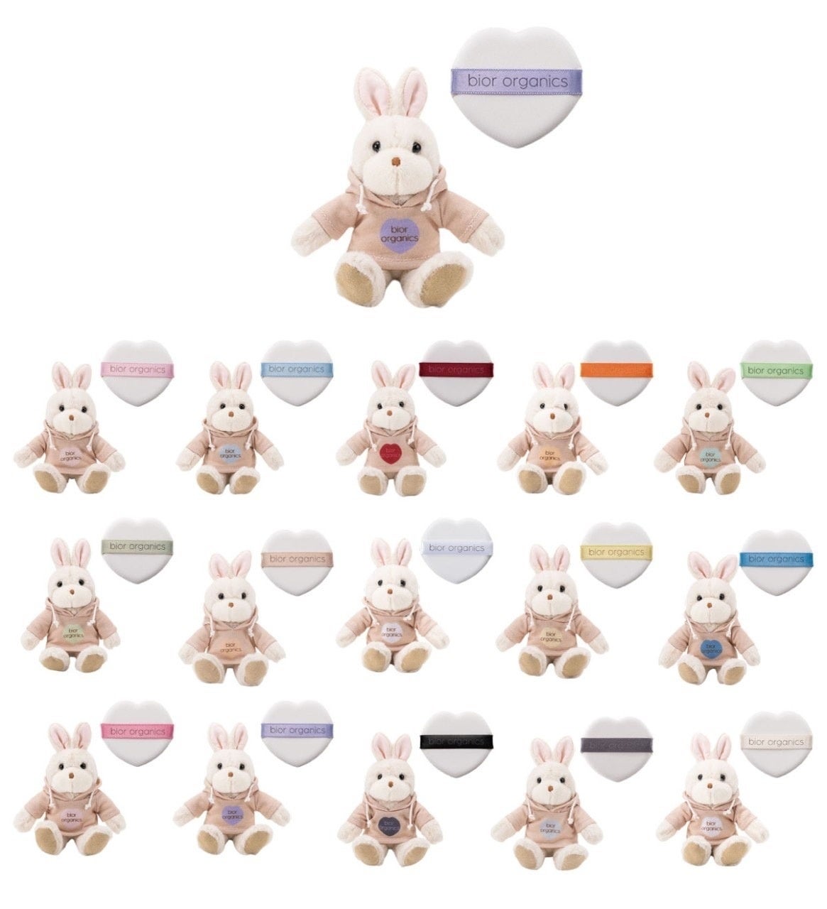 クルエルティフリーマークにちなんだ、うさぎのオリジナルキャラクター「biorラビ」のキーホルダーとカラーパフをセットでプレゼント。