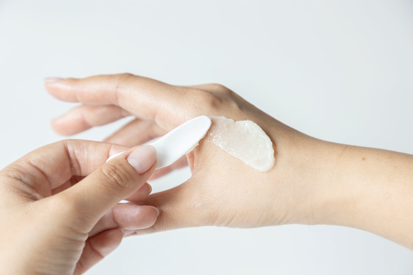適量を手にとり(さくらんぼ大・約2g)、気になる部分を中心に優しく撫でるようにマッサージしてください。