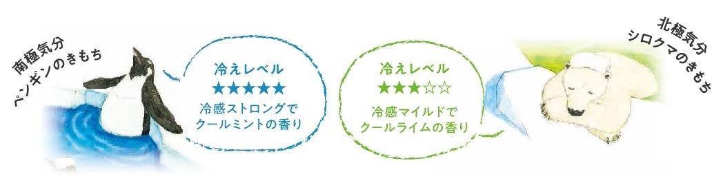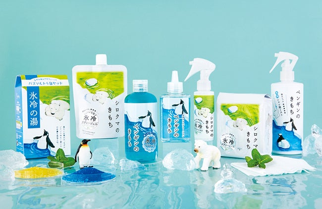 氷冷シリーズ内1番人気のなぜかジワジワ冷たさ感じる「バスソルト」や、昨年発売し大好評をいただいたクールなボディーケアアイテム「ボディーミスト」「ボディーシート」が今年も登場。
