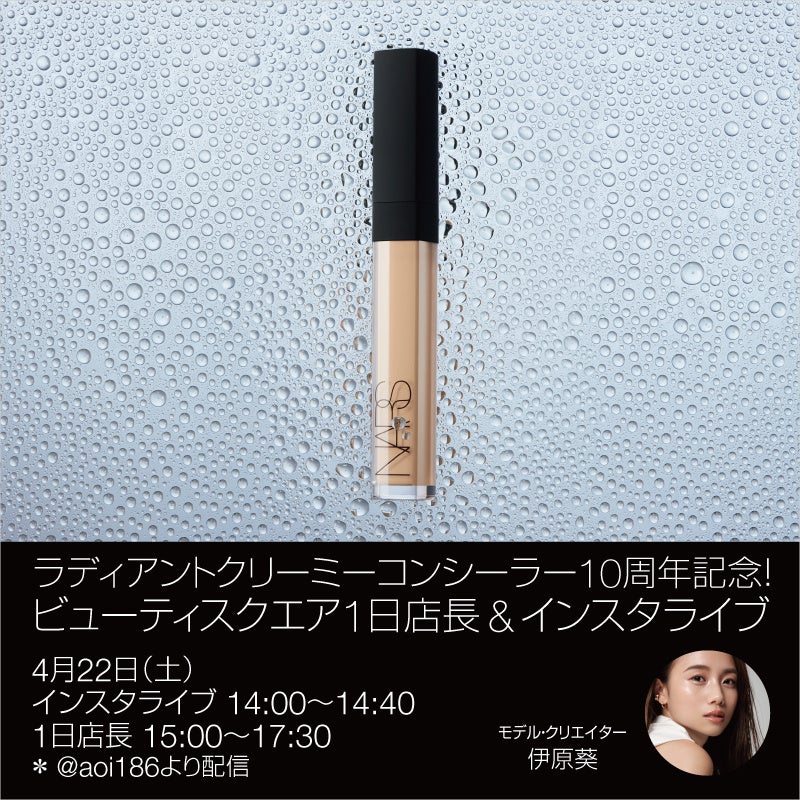 1994年、フランソワ・ナーズにより創設されたNARSは、2001年、伊勢丹新宿店からはじまりました。そんな、NARSベストセラーアイテムである「ラディアントクリーミーコンシーラー」が今年発売10周年をむかえます。10周年をむかえるにあたり、ファンへの日頃の感謝の気持ちを込めて、スペシャルゲストを迎え、“夏に崩れないトランスルーセントな肌”をテーマに、4月9日のGYUTEさんのWITH原宿 資生堂ビューティ・スクエアの1日店長、トークショー&インスタライブを行いました。また、これを皮切りにさまざまなイベント・ライブを開催いたします。 GYUTEさん、エリーさん、川上桃子さん、瀬戸麻実さんに続いて第2弾のゲストも決定いたしました。
