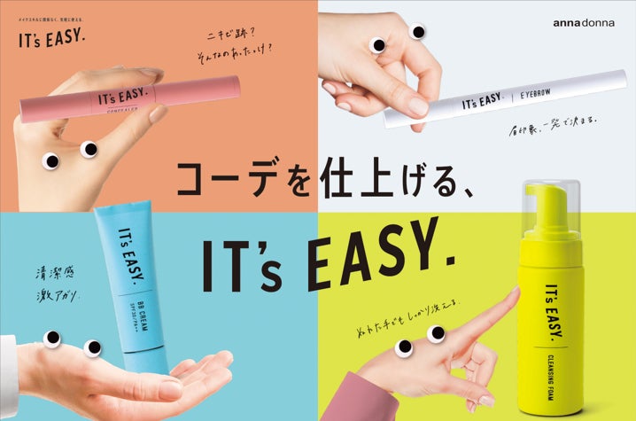 イッツイージーとは、英語で『余裕だよ!』という意味の慣用句。使いやすさへのこだわりと絞り込んだラインアップで、メイクを始めてみたいエントリー層を、気軽に最初の一歩に誘います。