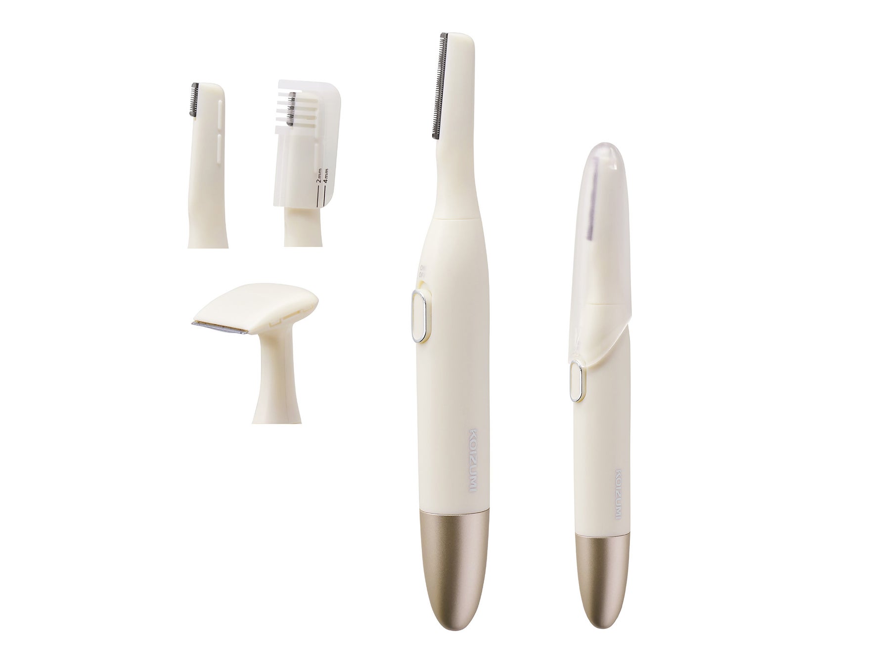 ・マユシェーバーは眉間や眉下など細かい部分に使いやすい刃と、マユの長さを整えるコーム付き(2㎜、4㎜)。
