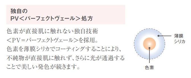 さらに色素が直接肌に触れないよう薄膜シリカでコーティングしたPV処方を採用。