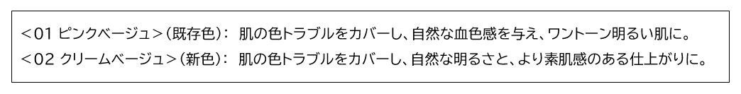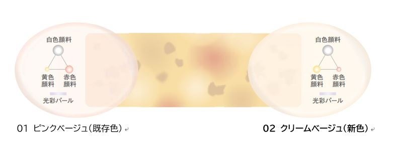 2色ともくすみがちな敏感肌を考慮した、肌になじむ色設計。自分の肌色に合わせるという選択だけではなく、「ワントーン明るく」「素肌っぽく」など、なりたい「キレイ」をかなえることができます。