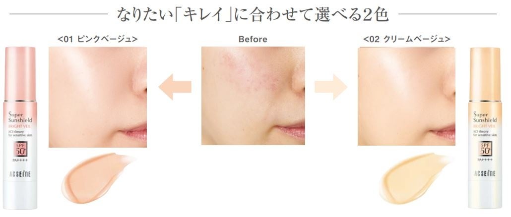 しかし、マスク生活による乾燥や摩擦刺激が続いたことで、くすみ、色ムラ、シミ、赤みなどの色トラブルが多様に。そこでアクセーヌは、UV対策とともに“色トラブルカバー”と“肌の明るさ”を叶える『スーパーサンシールド ブライトヴェール』に、新色<02 クリームベージュ>を追加いたします。くすみがちな敏感肌に合わせ、あえて黄み寄りにした独自の色設計で、素肌そのものがキレイになったようなイキイキとした印象を叶えます。