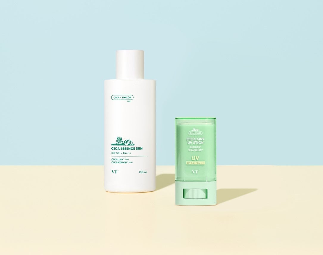 [写真] (左)CICA エッセンスサン(100ml) 2,970円(税込) /(右)CICA エアリーUVスティック 2,200円(税込)