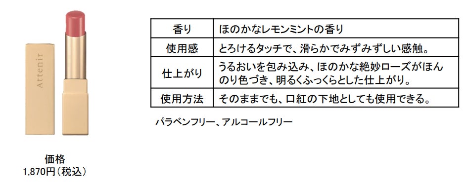 また、デリケートな唇を紫外線ダメージから守る、UVカット機能付きの唇用美容クリーム『ピュアリップセラムUV』も登場。溶け込むようなセンシュアルな絶妙ローズは、自然で理想的な血色感ある仕上がりで、大人の唇の美しさを引き立てます。