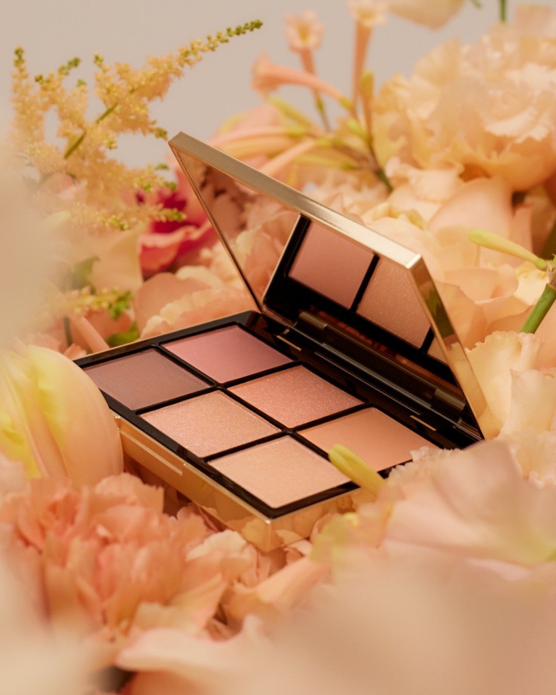 コーラル、ピンク、イエローの幸運を引き寄せるような春らしいパステルに、まぶたの立体感を引き出すナチュラルなモカブラウンや、透明感あふれる輝きが美しいハイライトを組み合わせました。