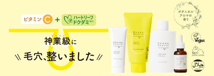 同シリーズは毛穴を整える共通成分「ビタミンC」と「ハートリーフ」を配合、世界的に注目をされているヴィ―ガン処方、動物実験不実施、動物成分不使用、ハラール認定処方でつくられたグローバルコスメです。